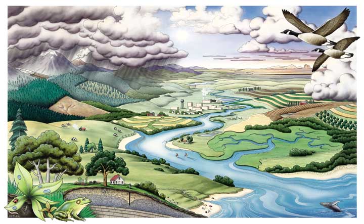 Below is an image I created for a poster used to educate school children about the water cycle. The US Department of Agriculture published millions of copies and distributed them to schools all over the country.